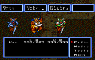 Like the previous game, it is a Japanese-style RPG set in a mixed sci-fi and medieval world. The game has random enemy encounters and simple turn-based combat mechanics. Player-controlled characters can learn and use various offensive and healing spells; however, enemies are restricted to physical attacks. Characters join and leave the party frequently, as dictated by the plot; the party may contain up to four active combatants. Story progression and overworld exploration is linear; dungeons are usually fairly complex and maze-like. Full-screen anime-style cutscenes with voice-overs advance the story of the game.