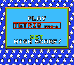 Last up is Nintendo's Tetris in A-type mode. All remaining time for the Championship is played out here. The player's objective is simply to get the best score. The Tetris score is multiplied by 25 and added to the previous Super Mario Bros. and Rad Racer scores.