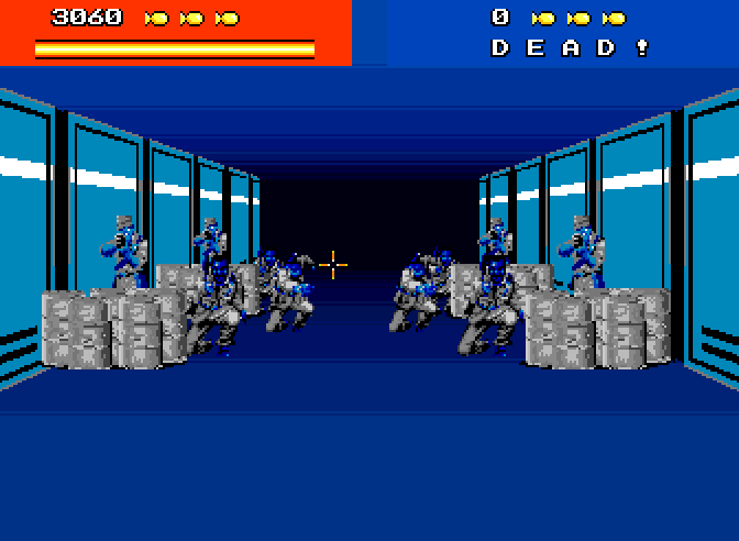 Unusually, this Operation Wolf-influenced shoot 'em up sees you start behind enemy lines, and gradually attempting to escape. As you've captured the Rapier machine gun your enemy have been developing, there are plenty who can't bear to see the back of you unless it's bloodied and lifeless.