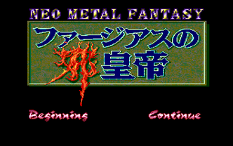 Neo Metal Fantasy is a traditional Japanese-style RPG. Traveling over the world map, the player-controlled party visits towns, descend into dungeons, and engage randomly appearing enemies in first-person perspective, turn-based combat, using physical attacks or magic. The game features anime-style cutscenes.