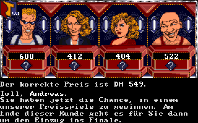 Pricing games include the Mountain Climbing (in which your 3 guesses must be less than $300 away in total, otherwise a goat will push you over the edge), Safe Cracking (in which you have 3 possibilities for each part of the price, and must correctly guess it) and the Dice Game (in which you accept or reject random rolls to get the real price).