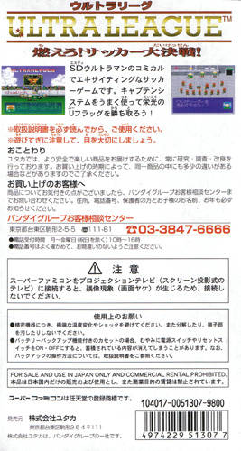 | description | Ultraman-themed soccer game released in 1995 for the Super Famicom. Developed by Tom Create and published by Yutaka. |