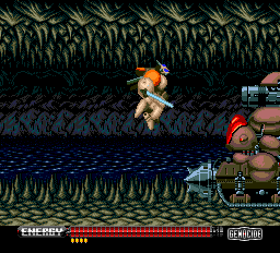 Genocide is a side-scrolling action game. The player controls Tracer, who can fight with a sword-like melee weapon and jump. Later in the game Tracer acquires "Betty", a powerful weapon that can shoot in eight directions. The gameplay is fairly straightforward; there are no power-ups, and the bulk of the game consists of surviving continuous onslaughts of enemies.