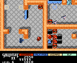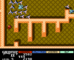 Gauntlet II is essentially an expanded version of the original Gauntlet. Like in the original game, there are four character classes to play as, with the choices being Warrior, Valkyrie, Wizard and Elf. The main difference from the original game is that multiple players can now choose to play as the same character class. Because of this each player is now distinguished by the palette of their character, with red and blue being in all versions of the game, while yellow and green are featured in the 4-player version. New voice samples were added in Gauntlet II, identifying each player by their color and class (e.g. "Yellow Elf", "Red Wizard").
