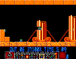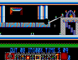 You are in control not of any individual Lemming, but of a cross-hair, which can be moved over any of the Lemmings. Along the bottom are a selection of functions which can be assigned to a Lemming, including climbing, floating and bashing. You must click to select the appropriate function, then click on the Lemming to activate it. Each level has a different range of skills on offer, a different amount of Lemmings, and a different percentage target in order to progress.
