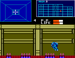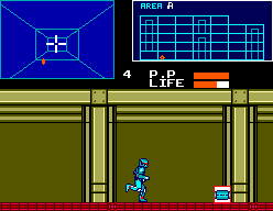 The game screen is divided into three sections. This includes a first-person view of the map, in which you can see objects that are coming your way. There are two types of objects: red objects indicate the lower cyborgs, while white ones indicate the chief cyborgs. Next to it is a map of the area, your life and psycho power count. Below these is the action screen.