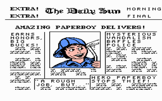 There are three different courses on which the player can deliver papers: Easy Street, Middle Road, and Hard Way. The player scores points for each paper successfully delivered to a subscriber, but also for breaking the windows or other household features of non-subscribers. Each run through the course takes a single day, with an entire game consisting of delivering Monday through Sunday. At the end of each day any subscribers that had a paper successfully delivered gives a bonus. Any subscribers missed on that day unsubscribes for the following day. If all papers are delivered perfectly to each house the player receives double points for each subscriber, and, unless at the max, get a formerly lost subscriber back.