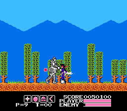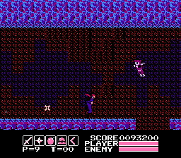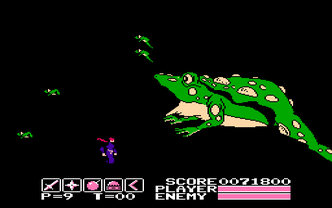 Kamen no Ninja Akakage ("Masked Ninja Red Shadow") is a ninja side-scrolling slice-'em-up that is based on an anime of the same name that was released in the same time period, which in turn is based on a much older live-action tokusatsu (superhero) TV show about a masked vigilante ninja that helps people (similar to, say, Zorro or the Lone Ranger. Or Kamen Rider for that matter).
