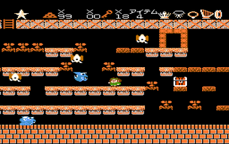 An action/platformer with an RPG facade, in which the player searches dungeons for treasure. It was the first NES game Vic Tokai ever produced.