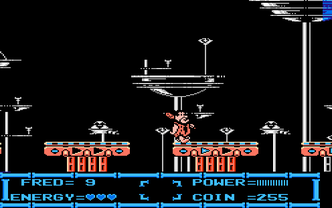 A NES platformer where you play as Fred Flintstone as his pets Dino and Hoppy are kidnapped by a collector from the future. A small alien comes back in time to help them, and Fred must find the parts of his time machine to save them.