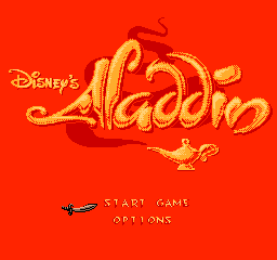 The player controls Aladdin, who must make his way through several levels based on locations from the movie: from the streets and rooftops of Agrabah, the Cave of Wonders and the Sultan's dungeon to the final confrontation in Grand Vizier Jafar's palace. The Sultan's guards and also animals of the desert want to hinder Aladdin in his way. He can defend himself with his sword or by throwing apples. Next to apples, Aladdin can also collect gems which can be traded for lives and continues with a traveling trader. Finding Genie or Abu icons enables bonus rounds. The Genie bonus round is a game of luck played for apples, gems or extra lives. In Abu's bonus round, the player controls the little monkey who has to catch bonus items that fall from the sky, but without touching any of the unwanted objects like rocks and pots.