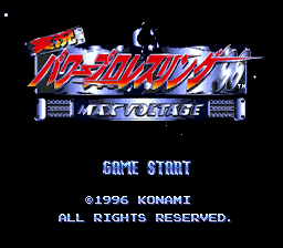 Jikkyou Power Pro Wrestling '96: Max Voltage is a pro wrestling game developed by Diamond Head (currently Pawapuro Production) and published by Konami for the Super Famicom in 1996.