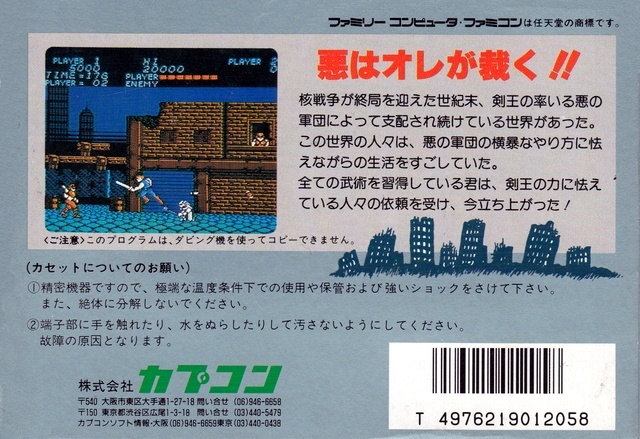 | description | Classic side scrolling game developed by Capcom which takes place in a post-apocalyptic world. Players assume the role of a warrior, named Trojan, who must defeat the evil tribes found throughout a gothic/industrial wasteland. |