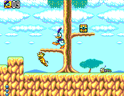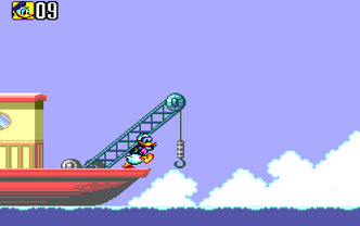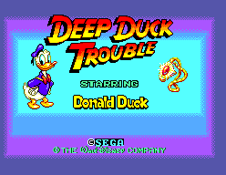 Deep Duck Trouble is a platform game where you play as Donald Duck. You must make your way through four different areas of the island - the jungle, an inlet, a volcano, and a valley - and defeat bosses at the end of each area. Donald can defeat enemies by jumping on their heads. He can also defeat them by kicking bricks which will may then hit his enemies. Donald's trademark temper also comes into play: if he eats a chili pepper, he will become furious and plough through anything in his way, whether it be bricks or enemies!