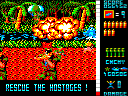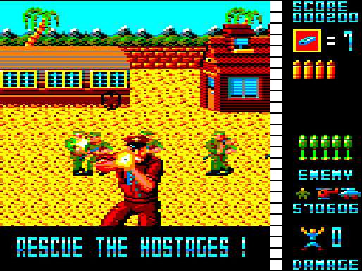 One of the most ported arcade games of all time, it has seen releases on everything from the Amstrad CPC to DOS, as well as the NES, the Sega Master System, the FM Towns and the TurboGrafx-16. Most of these ports lack any kind of light gun support (with the notable exceptions of the NES, Sega Master System, and the ZX Spectrum, which featured Magnum Light Phaser support) and must be played with a keyboard or a controller. The box for the Master System version features promotional art from Operation Thunderbolt.