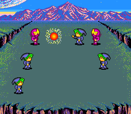 CD Battle is a game for two players that prompts each of them to insert an audio CD into the console in order to generate a party of three characters for each player, which then engage in a turn-based battle. The characters belong to different classes (warrior, mage, ninja, etc.) and have different parameters and special attacks. Despite the game's visual similarity to contemporary Final Fantasy games, it has no true role-playing elements and consists entirely of battles.