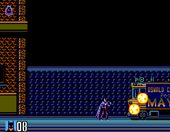 Unlike in the Game Gear version, there is no health bar: a single hit will kill Batman. To compensate, the game contains a generous amount of extra lives.