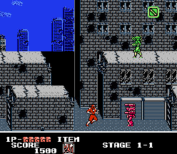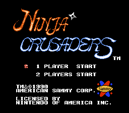 Ninja Crusaders is a side-scrolling action game released by Sammy in 1990. The player takes control of one of two ninjas who are tasked at thwarting an alien invasion. The game has been compared to Tecmo's Ninja Gaiden series.