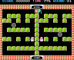 Binary Land is a 1985 action puzzle game developed and published by Hudson Soft. In the game, the player takes control of two penguins, Gurin and Malon. The goal of each level is to reunite the two penguins. The player controls both penguins at the same time. When the player presses up or down on the D-pad, both penguins go in the same direction. When the player presses left or right though, the penguins move in opposite directions. The player can decide at the main menu which penguin that they would like to control as their primary penguin. The primary penguin moves in the same direction that is pressed on the direction pad, and the secondary penguin moves in the opposite direction.