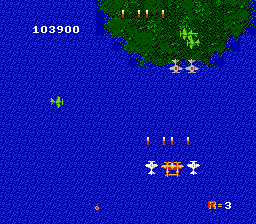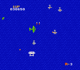1942 is a vertically scrolling shooter for one or two players. The year is 1942, and you are a daring fighter pilot "Super Ace". You begin and end each of the numerous levels on an aircraft carrier and then fly your plane into battle against the enemy over both sea and land. After destroying certain plane formations you can collect several different power ups to increase your fire power and chances of survival. You can also make your plane roll to avoid enemy attacks 3 times per life. There are 24 levels, the first being Midway and the last The Final Area.