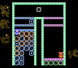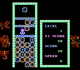 Two modes are available: Mode 1 puts your player on top of a growing pile which must be eliminated. It can be played alone (single), against another human (match) or in a quest against the computer.