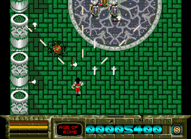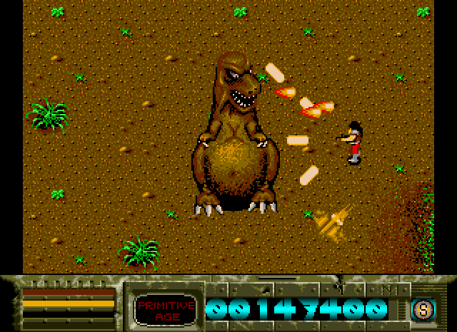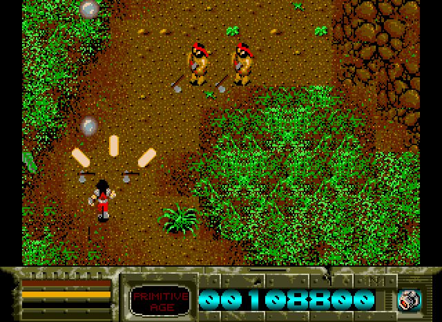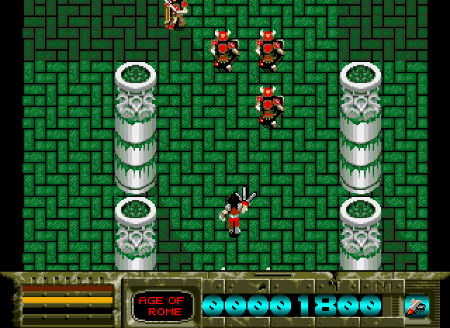 You are a Time Soldier, who is asked to rescue five warriors from different time periods: Sirius in the "Primitive Age", Laplace in the "Age of Rome", Dymos in "The World Wars", Alpha in the "Age of Rome", and Altair in "Future World". Each one of them is guarded by one of Gylend's henchmen, but to get to them, you must fight off other enemies that are specific to each time era. Some of these enemies will drop weapons that you can pick up and use. You can use several teleports scattered in each time era to travel to another.