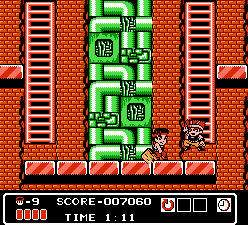 An action-platformer from Irem where a man with a hammer takes revenge on the construction company that destroyed his home.