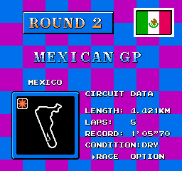 The game contains 18 tracks (the same 16 from the 1992 season, plus Donington Park and Phoenix, respectively the venues of the 1993 European Grand Prix and 1991 United States Grand Prix, as extras), each playable separately in the "Free Run" mode, or one-by-one against the 16 of the 1992 season in the "Grand Prix" mode. In the latter, a one-lap qualification drive must be passed before each race, determining the starting position in the grid, and also serving as a short practice for the upcoming course.