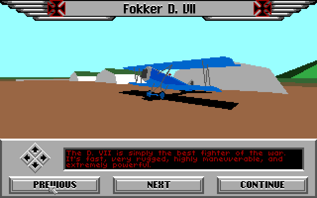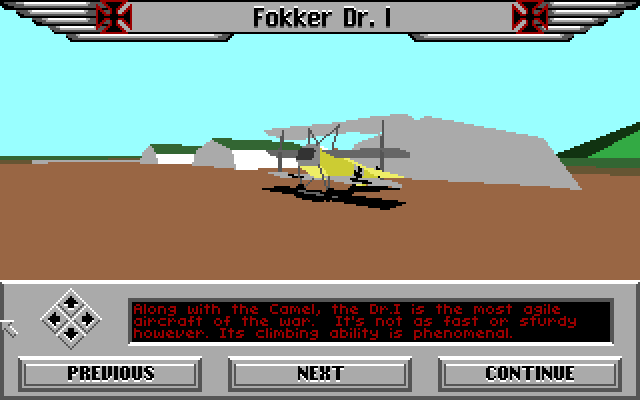 Red Baron puts you in the pilot's seat of actual World War I fighter aircraft. This game features 28 different aircraft from both the Allied and the German sides presented in actual 3D graphics. Start a career as a pilot and rise through the ranks to become the most feared ace in the skies, or participate in a variety of single missions including simple fighter sweeps, balloon-busting, zeppelin hunting, or take on an actual WWI ace in one-on-one combat. If you're good enough, you may even be able to take on the infamous Manfred von Richthofen, the Red Baron himself.