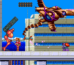 The game plays like a standard action side-scroller in which you must clear each stage of all enemies using your attacks and make your way to the end-level boss, kick his metallic behind and advance to the next stage. You have at your disposal an energy blade and a small collection of ranged attacks to deal with your enemies, and between certain stages you get to play shooter sequences to spice things up.