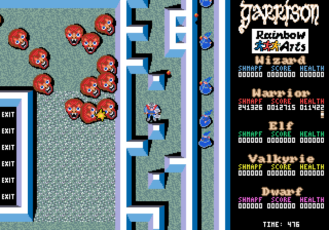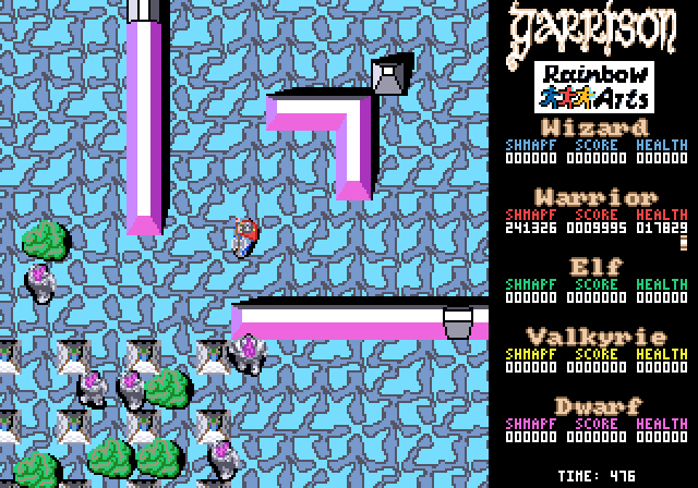 Like its predecessor, the game is an arcade beat'em up mixed with some adventure elements. The formula and the game mechanics have not changed, Garrison II mainly provides a set of (over 100) new levels and a new background story: The princess has fallen ill and five of her trusty servants are sent to gain a healing herb from a magician's tower.