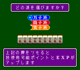 Jantei Monogatari is a hybrid of a traditional-style Japanese adventure game and a regular mahjong game. The player takes the role of the unnamed private investigator, and moves from place to place via menus, talking to different characters. The investigation happens through playing mahjong with each suspect: win and they'll tell you a bit more of what they know. At first, the investigator can only speak with the three girls in the photo, but as he wins games of mahjong against them, he gains information and experience that allow him to find new clues and talk to more suspects. The investigator will need to play against a dozen different opponents in his attempt to find out what happened to the kidnapped girl.