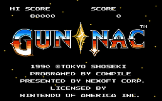 Gun-Nac is a top-down vertically scrolling shooter for the Nintendo Entertainment system. It is notable for the frequency with which it awards powerups to the player.