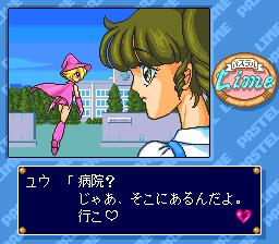 Pastel Lime is a Japanese-style adventure with simple gameplay. Only a few commands (sometimes just one) usually appear on the screen, and the player's input is mostly reduced to selecting these commands several times to trigger the next scene. Sub-menus (such as conversation topics) may appear as well. Game progression is strictly linear, and the player has no choice of selecting locations to travel to.