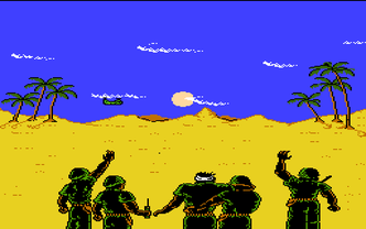 These advanced weapons allow players to stage a fictional World War III and to simulate modern warfare. Players can assume the persona of various clichéd Hollywood action film stars like Sylvester Stallone (シルヴェスター・スタローン), Chuck Norris (チャックノリス), Eddie Murphy (エディマーフィー), Bruce Lee (ブルースリー), and Arnold Schwarzenegger (アーノルドシュワルツェネッガー).[6] Stages include a jungle, forest, the swamp, and urban terrain.
