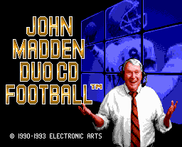 The first and only Madden game to appear on the TurboGrafx, it features the standard game modes such as exhibition and season and features full-motion video of plays, fans and many other important events happening on and off the field. It also features digitized voices of the quarterbacks, referees and fans, but the most important being the games namesake, John Madden, who lends his voice talent to the game.