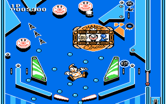 Pinball Quest is billed as a pinball role-playing game, though the term is used loosely, as you only earn gold to buy stoppers and more powerful flippers. Actually, there are four different modes of play. The RPG-mode has six, multi-screen pinball tables, where you use your flippers to knock the pinball into enemies, find keys, and eventually rescue Princess Bali. The other modes, POP!POP!, Viva Golf, and Circus, are each specialized multi-screen pinball tables involving sports, golf, and the circus. The latter has a slot machine and a bonus game in which you throw balls at animals to save the girl they are chasing.