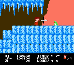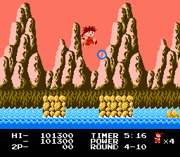 In this side scrolling action game, Kid Niki must rescue his beloved Princess Margo who has been kidnapped by the Stone Wizard. You are equipped with a Spinning Sword to clear any minions that stand in your way. You can also find a Golden Bell, whose chime slays from a distance, a Silver Bell, which creates an impenetrable shield of sound around you, a Mini-Niki, which grants you an extra life, and a Mini-Princess, which averts one death. There are seven realms you must traverse, each having a boss at the end. The seven bosses are Death Breath, Spike, the Stone Buddha, the Horned Witch, the Green Grub, the Mad Monk, the Samurai Guard, and the Stone Wizard. After you rescue the princess you must chase and defeat the Stone Wizard in the final eigth round.