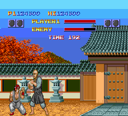 You are Ryu, a Street Fighter. Your goal is to travel to 5 countries (Japan, USA, England, China and Thailand) and beat 2 enemies at each of them. Many of these characters, such as Adon, Gen, and Birdie, are later seen in the Street Fighter Alpha series.