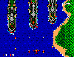 Fly your plane through five levels, shooting enemy planes, submarines, helicopters, and other enemies along the way, and use your equipped cluster bombs if necessary. You need to destroy a target that is outlined in your mission briefing. You have three lives and limited cluster bombs. To help you along the way, you can shoot a power pod to score points, increase your firepower, and gain some help from fellow squadrons.
