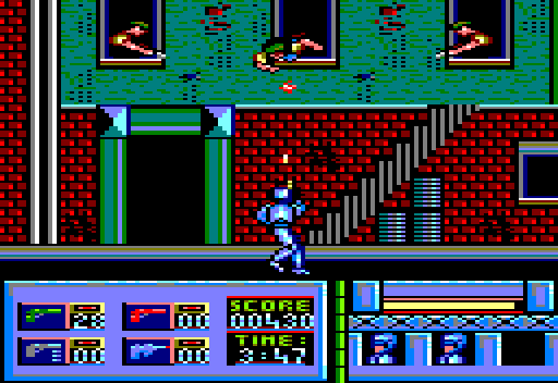 RoboCop was licenced by UK-based Ocean Software at the script stage, so (fairly uniquely for the time) the 1988 run & gun and beat 'em up hybrid arcade game developed and published by Data East and Nihon Bussan, was licensed from a computer game company rather than the other way around. This is why the arcade game bears a licence credit for Ocean. Several reworked versions appeared for home computers and video game consoles, most of them handled by Ocean, as well as a NES version ported by Sakata SAS and published by Data East. It has more recently appeared on mobile phones. The IBM and Apple ports were produced by US-based Quicksilver Software. Unlike the other home versions, the Commodore 64 version is a mostly original game that only loosely follows the arcade RoboCop. In addition to a different soundtrack, the boss battles are replaced with a screen where the player must shoot a man holding a woman hostage (without hitting her). The original European cassette version was notorious for a huge number of bugs (which were cleaned up in the US disk release).