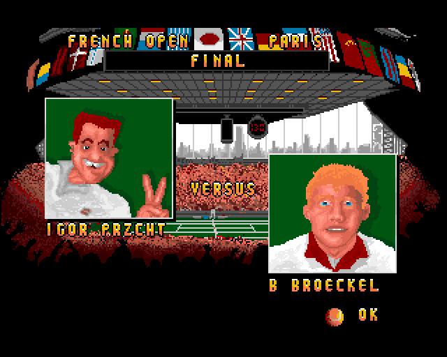 The game supports up to 16 players in singles matches on a variety of court surfaces. It includes all of the major world tournaments - the four Grand Slam events at Melbourne, Roland Garros, Wimbledon and New York, plus the Davis Cup and Masters events. An early attempt at TV-style coverage is offered.