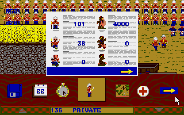Individual troops are represented in the game as animated soldier miniatures, with the player being able to move individual soldiers, resolve individual hand-to-hand combat situations and order a variety of different firing positions for each soldier.