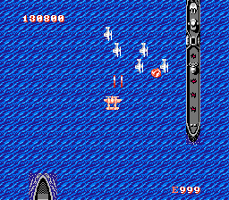Updates to the gameplay include an energy bar, which can be run down by either being hit from incoming fire or using a special weapon. The energy bar can be replenished by picking up power-ups, while special weapons (lightning, cyclones and waves) can knock down all fighters on the screen at the time.