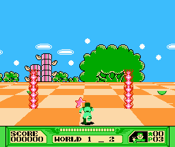 3-D WorldRunner is a 1987 third-person, action-shooter-platformer, developed by Square. The player assumes the role of Worldrunner, also known as Jack, and must save several planets from strange alien creatures, led by the villian Grax. The game consists of 8 worlds, each divided into separate quadrants. The player must navigate through the level and defeat the endboss before a timer at the bottom of the screen runs out. Worldrunner is not controlled directly by the player, but his movement speed is changed by use of the directional pad. He can also jump and fire missiles, which must be obtained by the player. It was notable for being one of the first pseudo-3D platformers.