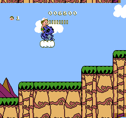 A big addition are dinosaurs which serve as mount and offer different abilities, e.g. flying or shooting fireballs. Like all power ups these don't have to be used instantly but can be saved for later: before every level the player can choose the power ups he wants to bring with him. There are overall eight worlds with different themes which are represented by a overhead map. Sometimes there are different paths with other level and at the end of a world Master Higgins has to fight a boss.
