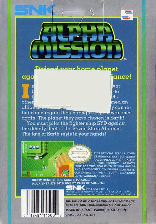 | __long_description | Alpha Mission (or ASO: Armored Scrum Object, as its known in Japan) is a vertical-scrolling shoot-em-up from SNK, released in Arcades in 1985 and on the NES a year later.