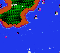 Argus is functionally similar to Xevious: The screen scrolls vertically and the player has separate buttons for ground (bomb) and air (gun) attacks. Shooting at three structures on the ground with the same letter will give the player a power-up and it's also possible to temporarily transform into a powerful robot variant. The game also introduces an odd feature where the player is expected to land their ship at the end of each stage: This requires some precise control and timing with the D-pad, otherwise the ship will crash and explode.