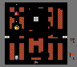 Battle City is a refined version of Namco's old arcade game Tank Battalion. Destroy different enemy tanks, while trying to keep them away from your base. When you have destroyed 20 enemy tanks you advance to the next level with different layout. In each level there's some obstacles which you can use to your advantage. Obstacles include red bricks which you can shoot out of your way, silver bricks which are highly armored, water and ice. You start the game with a basic tank, which you can power up to better one little by little.