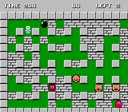 The first of the Bomberman series, Bomberman is a single-player game with a top down view and simplistic controls. In fact, in addition to movement, the player only has a single ability: placing bombs. Each bomb explodes into a cross-shaped blast (four directions) which can destroy either enemies or blocks. Power-ups may be found to increase the size of the blast, place additional bombs, increase the speed of the Bomberman or to walk through walls. The goal on each level is to destroy all enemies and escape through the exit before the time limit is up. Hitting the exit with a bomb blast releases more enemies which must also be destroyed.